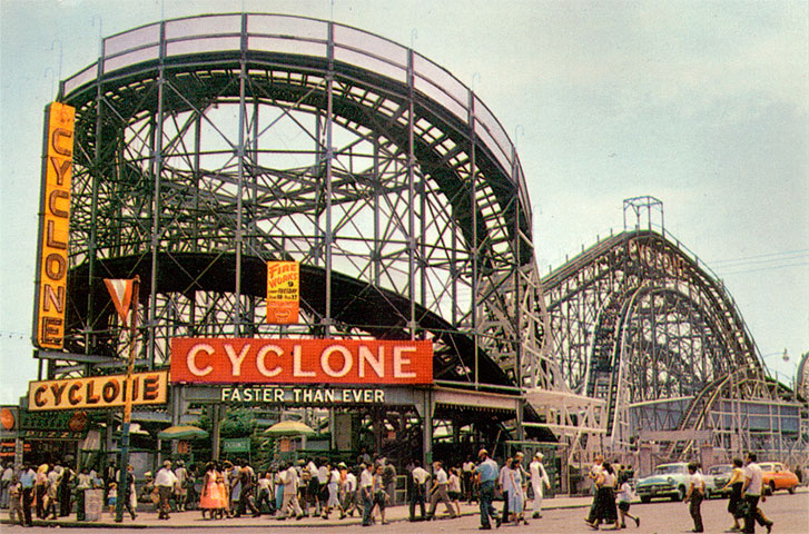 Below: A 1950s vintage postcard view of the Cyclone.