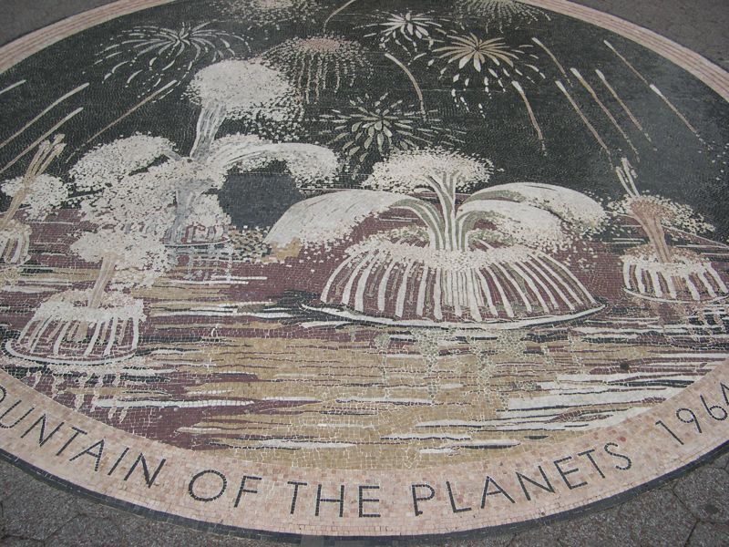 The Fountain of the Planets circle represents a feature of the 1964 World's Fair.