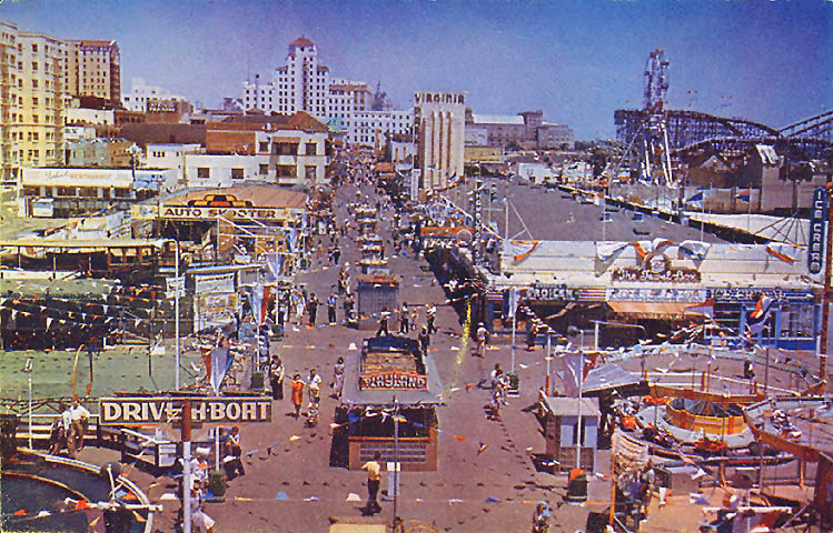 Looking East along the famous Long Beah Pike & Fun Area A Mike Roberts Production - Color Kard from Kodachrome