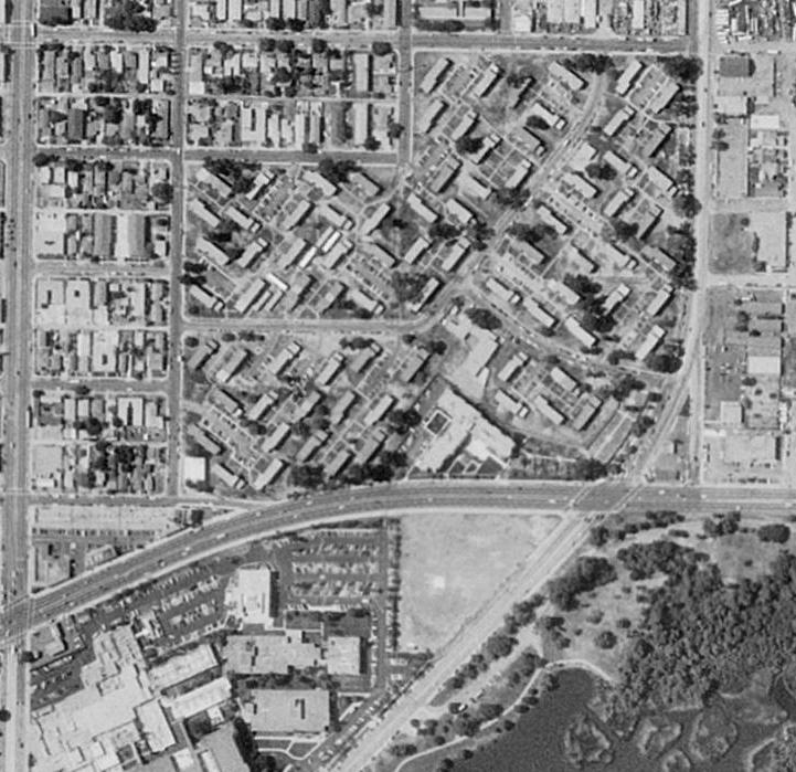 Normont Terrace got it's name from being situated roughly between Vermont and Normandie avenues to the east and west and was bounded by P.C.H. on the south side. Normont Terrace was built to house Navy personnel during World War II. But the project - originally intended as temporary military housing - had become a run-down public housing project owned by the City of Los Angeles' Housing Authority by the 1980s. Normont Terrace was comprised of 400 units on 37.6 acres of land.
