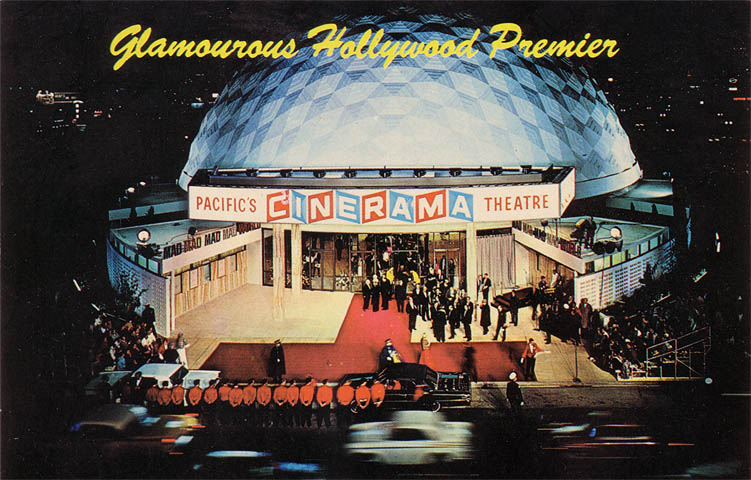 Pacific's Cinerama Theater - Hollywood, CA Platichrome card by Colourpicture Publishers Inc - Color by Bert Kaltman